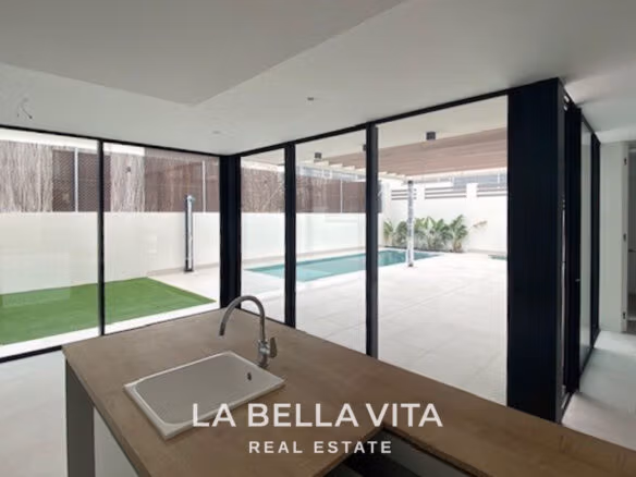 In diesen Villen wurde kein Detail übersehen, von der Außenschreinerei aus Aluminium bis hin zu motorisierten Jalousien, die sowohl Schönheit als auch Funktionalität gewährleisten. Die Villen sind mit voll ausgestatteten Badezimmern und Schränken sowie eleganten Küchenmöbeln ausgestattet. Zu den technologischen Annehmlichkeiten gehören ein aerothermischer Warmwasserbereiter, eine Klimaanlage und eine Vorinstallation für eine Autoladestation. Draußen lädt der private Pool mit Loungebereich und LED-Beleuchtung (7x3m) zum Entspannen und Unterhalten ein.