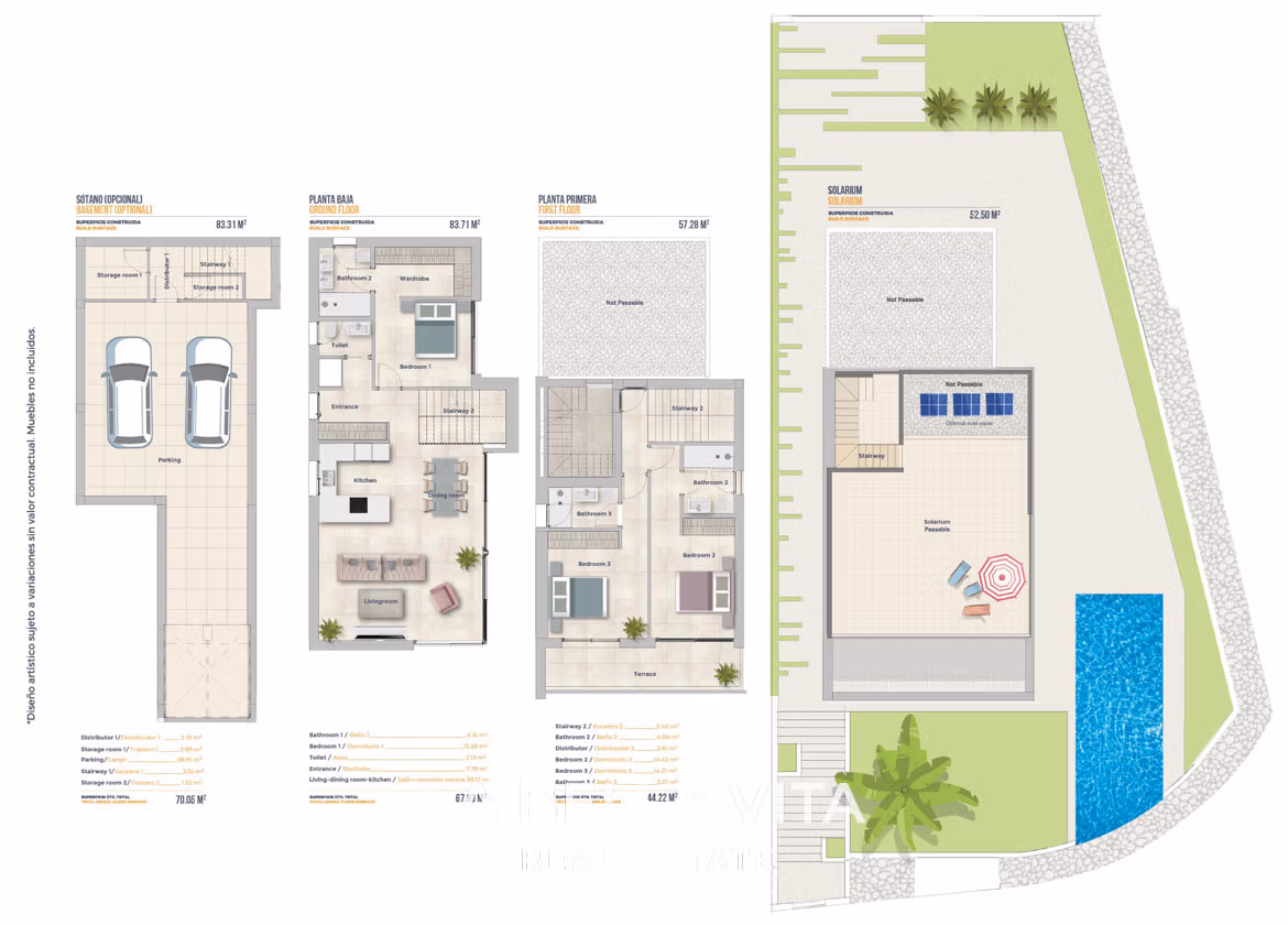 Chacune de nos maisons neuves à Finestrat est équipée d’une piscine privée de 7 x 3 mètres. Imaginez-vous profiter d’une baignade rafraîchissante par une journée ensoleillée, directement dans votre propre jardin. Ces piscines sont parfaites pour se détendre, s’amuser en famille ou même pour organiser des rassemblements au bord de la piscine.