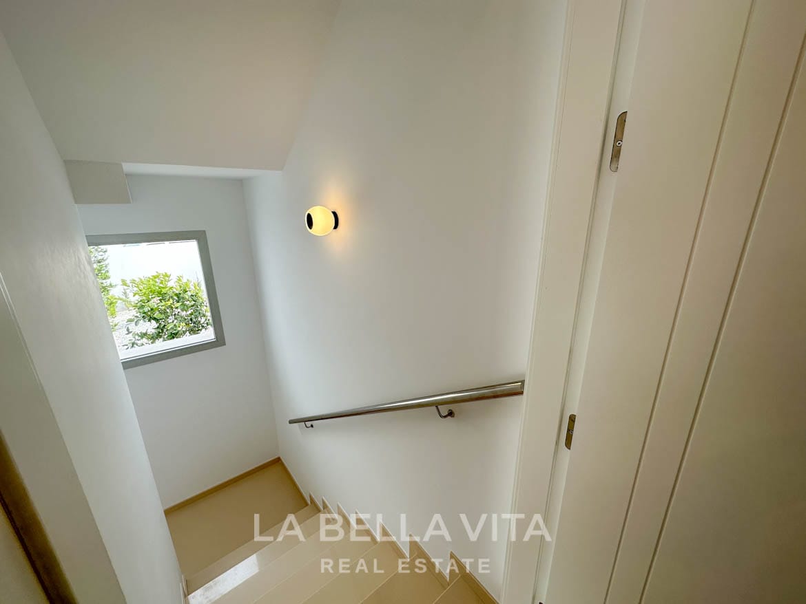 De villa beschikt over 4 slaapkamers met inbouwkasten en 4 badkamers, beide met een modern en elegant design. Er is een open woonkamer en keuken, perfect voor het ontvangen van gasten. De kelder heeft een garage en veel bergruimte. Het solarium is de perfecte plek om te zonnebaden en te genieten van het prachtige uitzicht op de bergen en de zee.