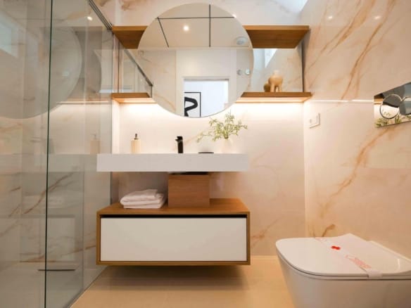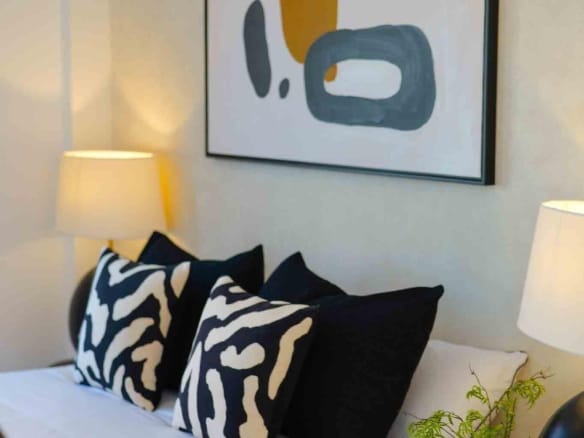 To kluczowe mieszkanie jest częścią prywatnego kompleksu mieszkaniowego, który obejmuje bungalowy, szeregowce oraz bliźniacze wille.