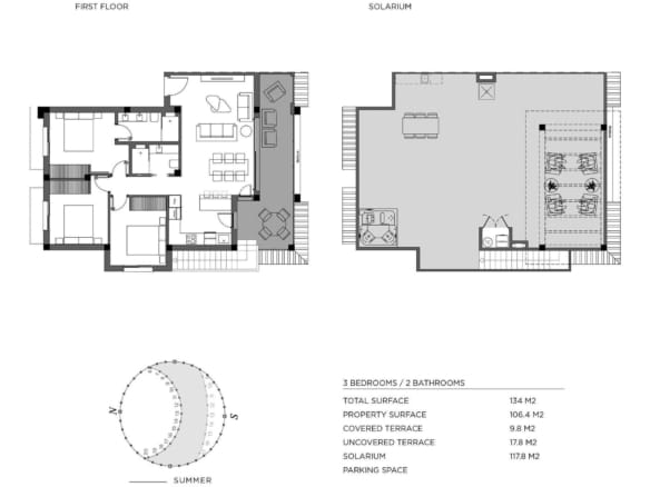 Dzięki orientacji na południe, mieszkanie cieszy się obfitością naturalnego światła przez cały dzień, dzięki czemu zarówno wnętrza, jak i solarium są idealne do całorocznego użytkowania.