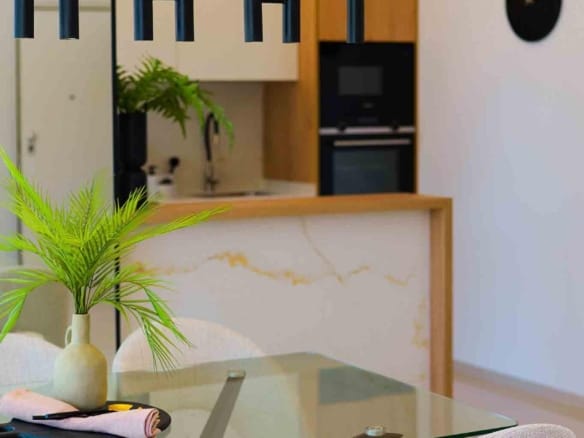 Mieszkanie charakteryzuje się praktycznym i wygodnym układem zaprojektowanym z myślą o życiu śródziemnomorskim: