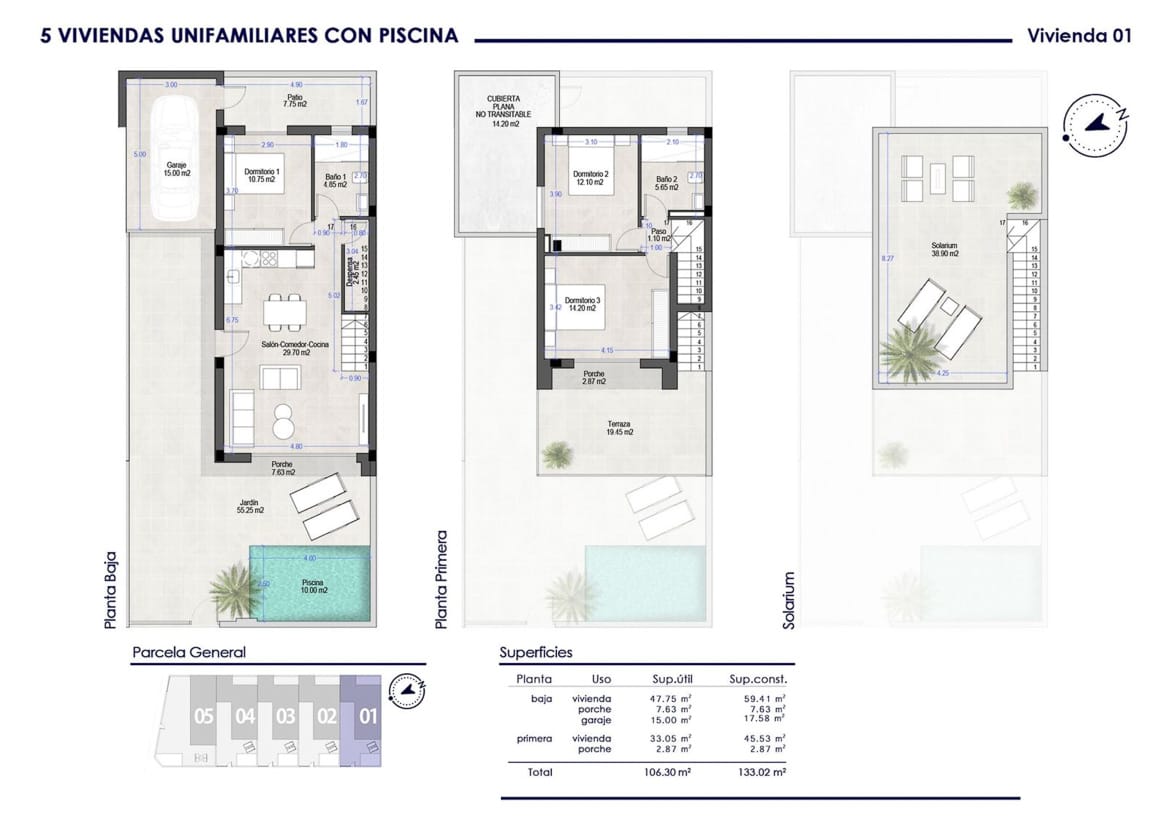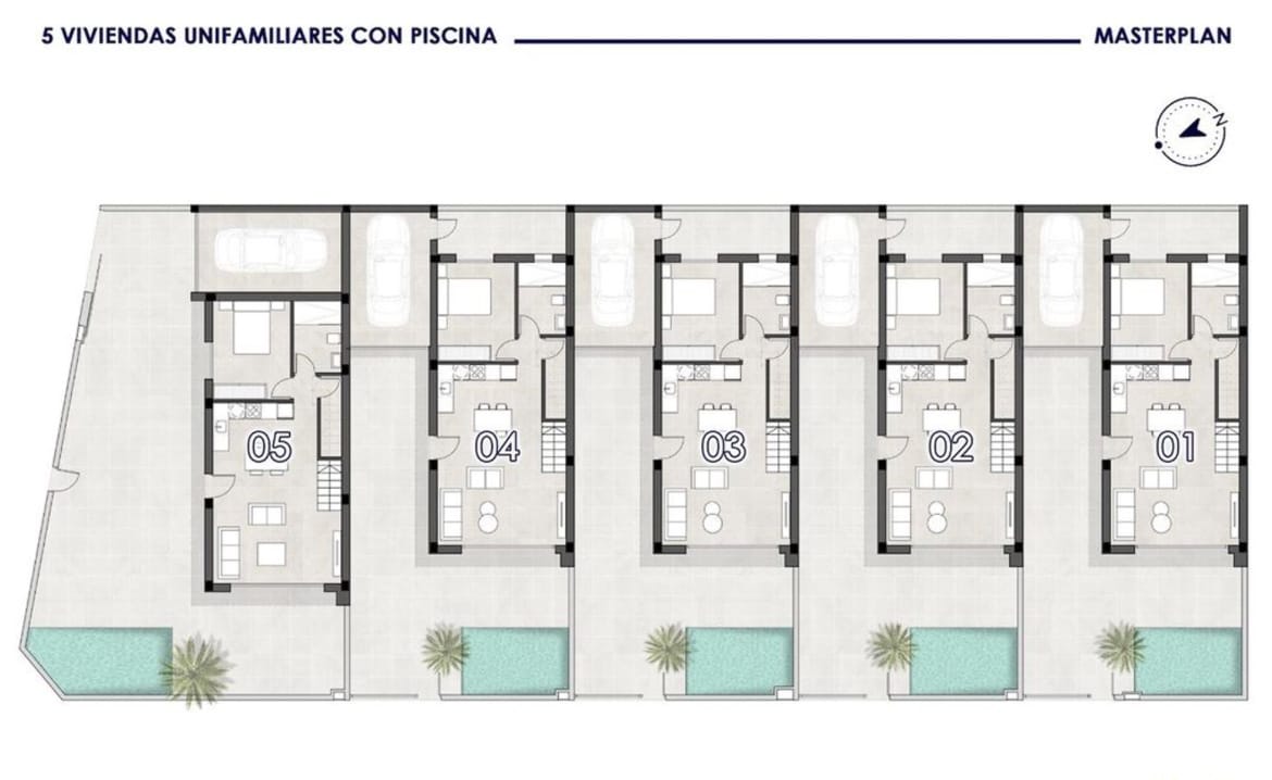 Nowo wybudowane kamienice w San Pedro del Pinatar z prywatnym basenem i piwnicą