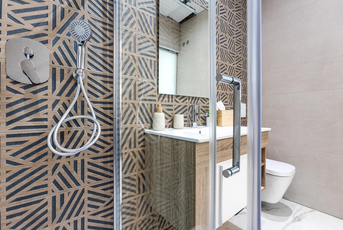 • High-quality porcelain or ceramic flooring throughout.
