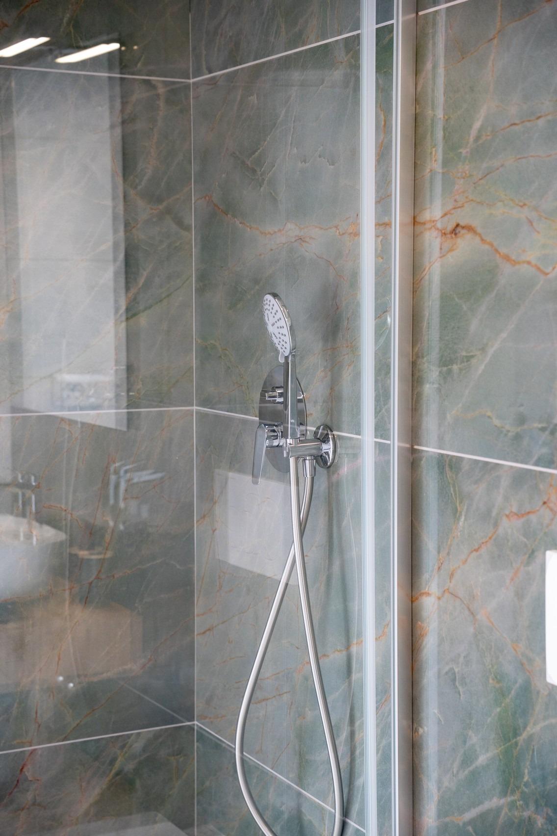 • High-quality porcelain or ceramic flooring throughout.