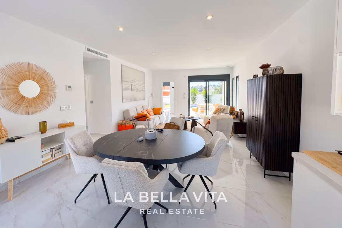 Discover a limited collection of contemporary single-storey villas in Pinar de Campoverde, an exclusive location near protected natural areas and just minutes from the coast. Designed for comfort and modern Mediterranean living, these homes offer private pools, large solariums, and bright open-plan interiors.