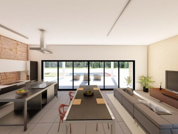 This newly built villa is equipped with pre-installation for ducted air conditioning. The kitchen is fully equipped with appliances, offering a functional and stylish space for everyday living. The modern design, combined with quality materials, ensures a comfortable and low-maintenance home, ideal for permanent living or as a country retreat.