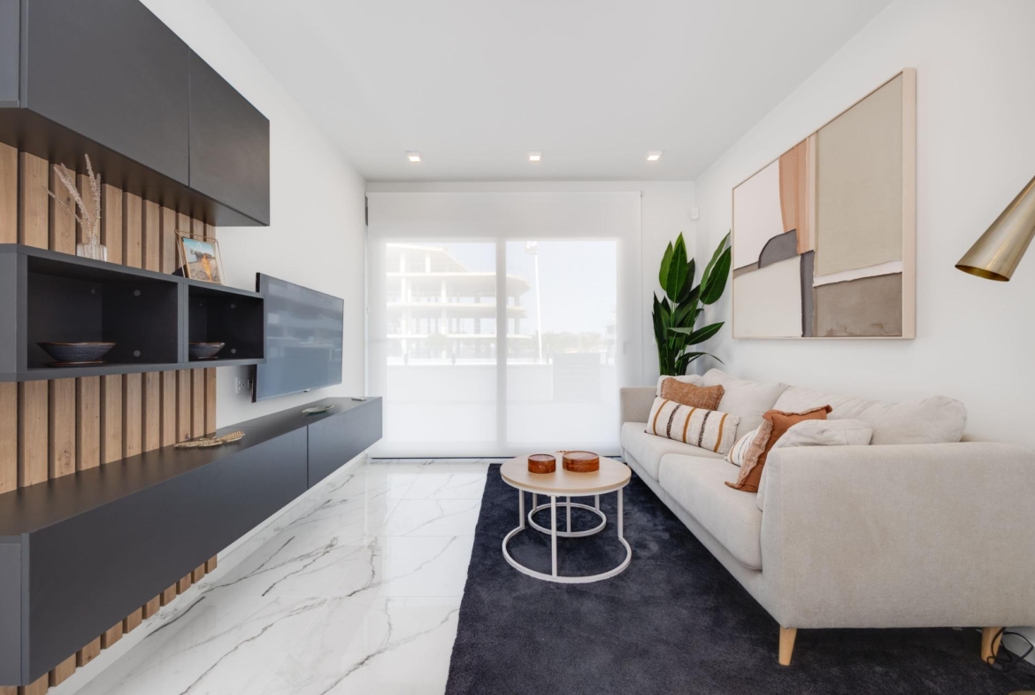 With modern design, a complete furniture package, a generous private terrace, and a prime location in San Miguel de Salinas, this new build ground floor apartment offers an excellent choice as a permanent residence, a holiday home, or a rental investment on the Costa Blanca South.