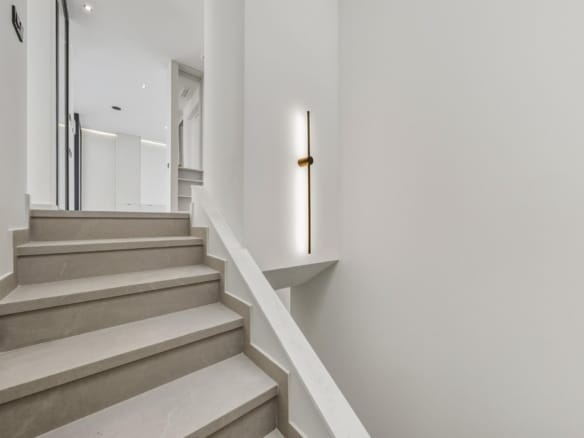 The main level welcomes you with an elegant entrance hall with built-in wardrobe leading to two spacious en-suite bedrooms, including a master bedroom with elevating window doors opening to a Juliette balcony and terrace.