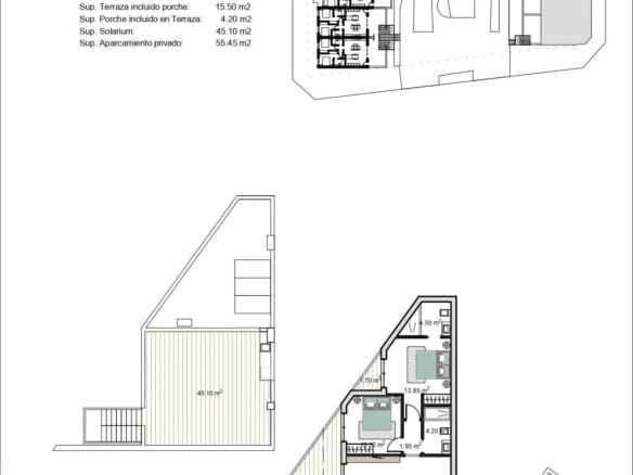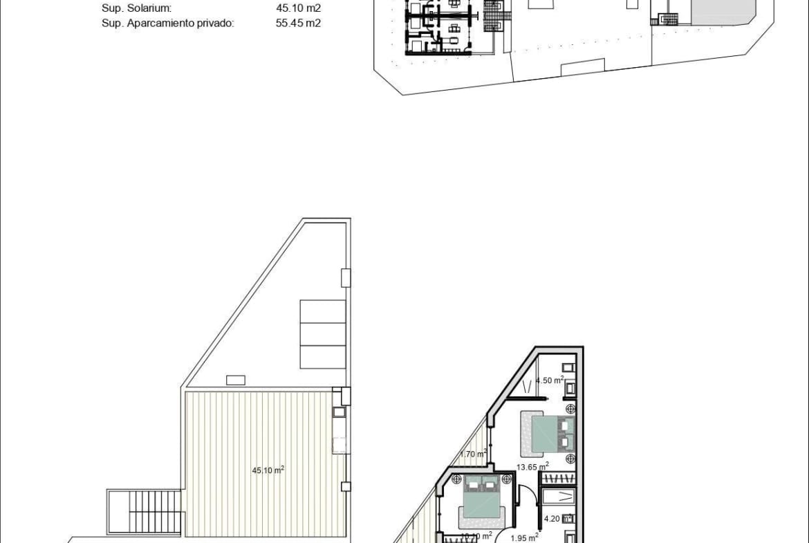 These exclusive bungalows are designed with 3 bedrooms and 2 bathrooms, terrace on the ground floor and with 2 bedrooms and 2 bathrooms and solarium for the upper floor.