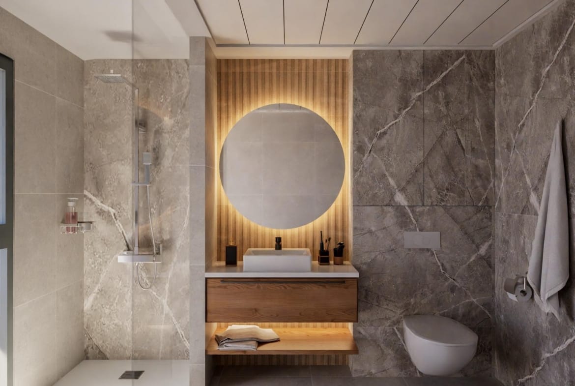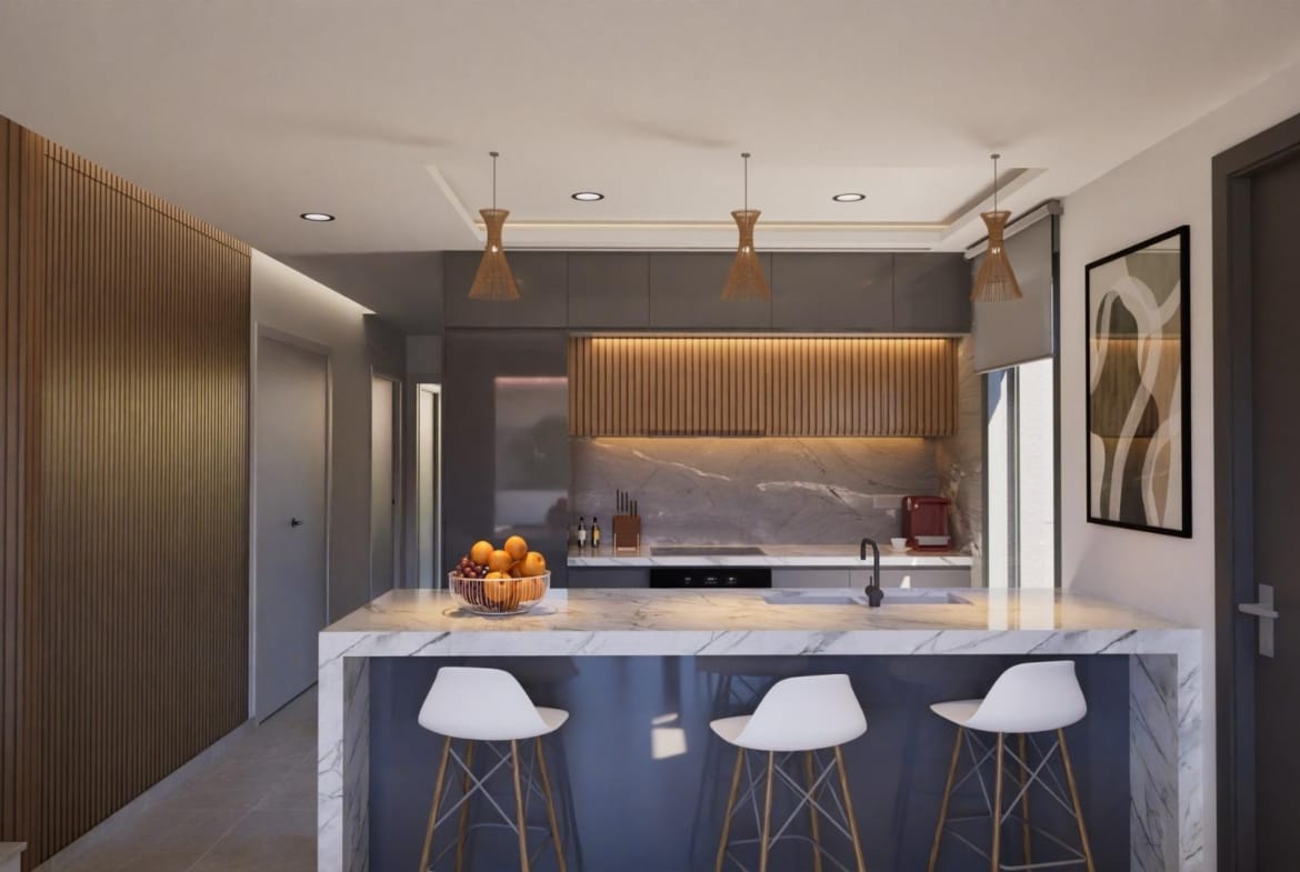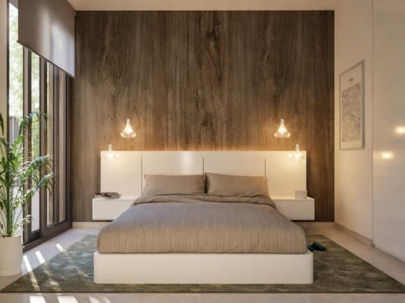 These exclusive houses are designed with elegant and functional interiors, fully equipped kitchen, appliances included. The bathrooms have a vanity unit with washbasin and light. The bedrooms include lined wardrobes with drawer units and each property has pre-installation for ducted air conditioning.