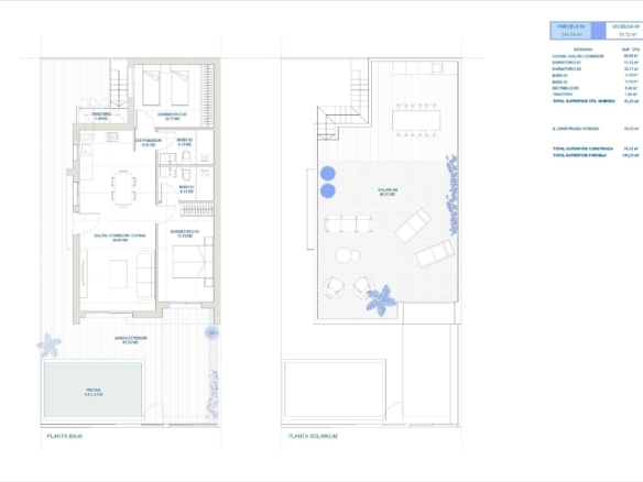 Modern villas build over one floor, has 2 or 3 bedrooms, 2 bathrooms, open plan kitchen with the lounge area, fitted wardrobes, private solarium.