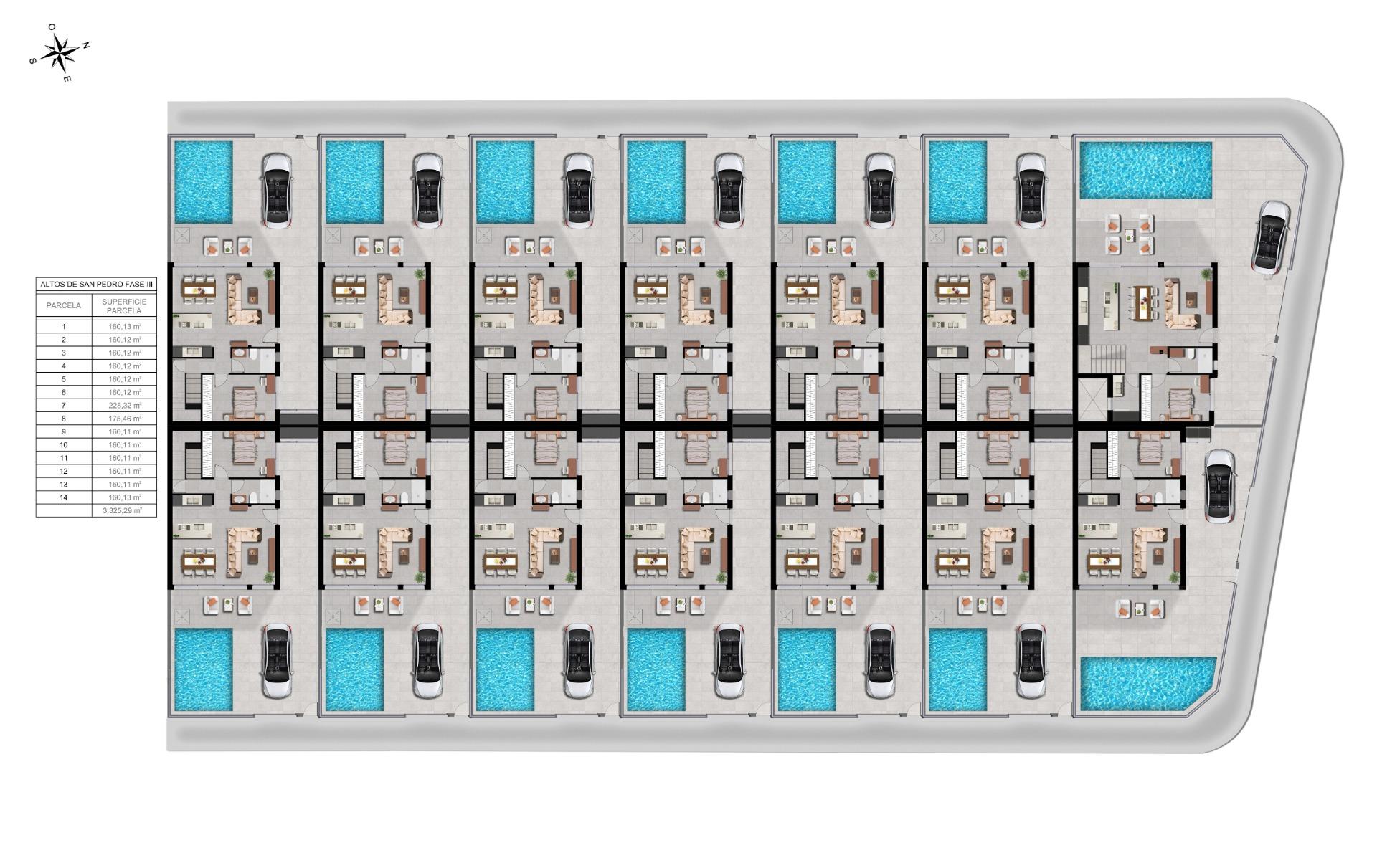 Discover these elegant new build villas for sale in San Pedro del Pinatar, a charming coastal town in Costa Cálida, renowned for its wellness lifestyle and laid-back beach atmosphere. This second phase of an exclusive project offers 14 semi-detached villas, each with a private pool, minimalist architecture, and high-quality finishes.