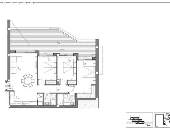 Buyers can choose between 2 and 3 bedroom apartments, all with 2 bathrooms, an open-plan kitchen and spacious living areas. Depending on the model, the homes offer different types of outdoor space: