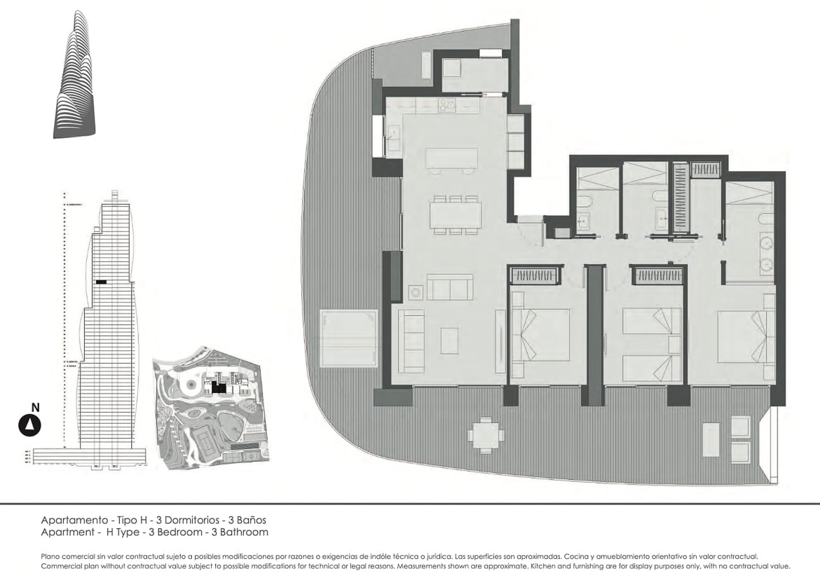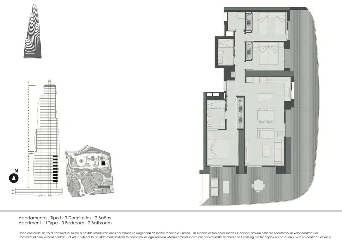 Мы с гордостью представляем эти апартаменты с 3 спальнями на продажу в Бенидорме, расположенные в самом высоком жилом здании Европы, необычном архитектурном шедевре высотой 230 метров с видом на пляж Поньенте.