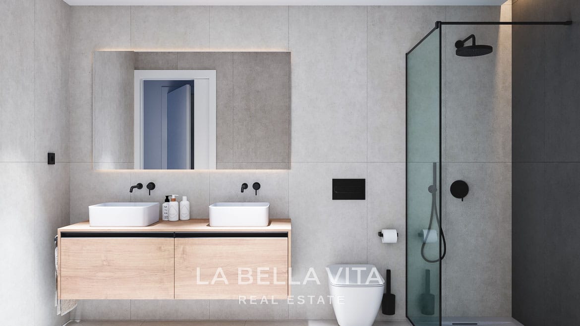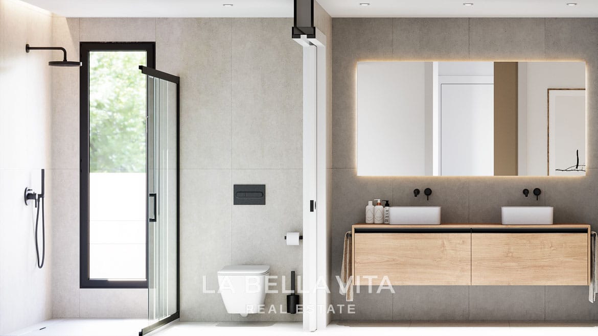 - Современные ванные комнаты с мебелью, зеркалами, душевыми перегородками, полами с подогревом и стильной отделкой.